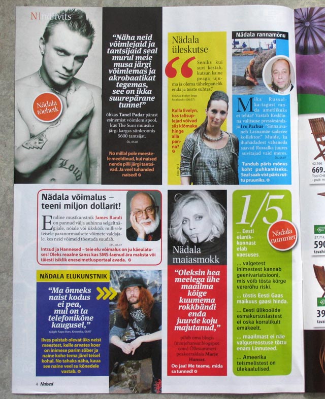 Ajakirjas Naised on Nähvitsa rubriik ja sinna on Eesti Päevalehe intervjuu põhjal tehtud üleskutse meie kohalikele selgeltnägijatele.