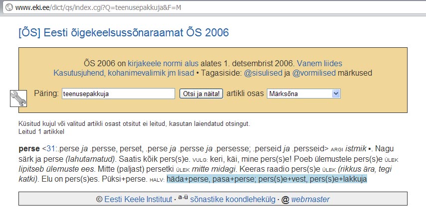 Ei ole jah, aga “korralike kodanike” survel on sõnastikuteenuse pakkujast karta, et ta hakkab “pahasid sõnu” resultaatidest välja tsenseerima. :-(
